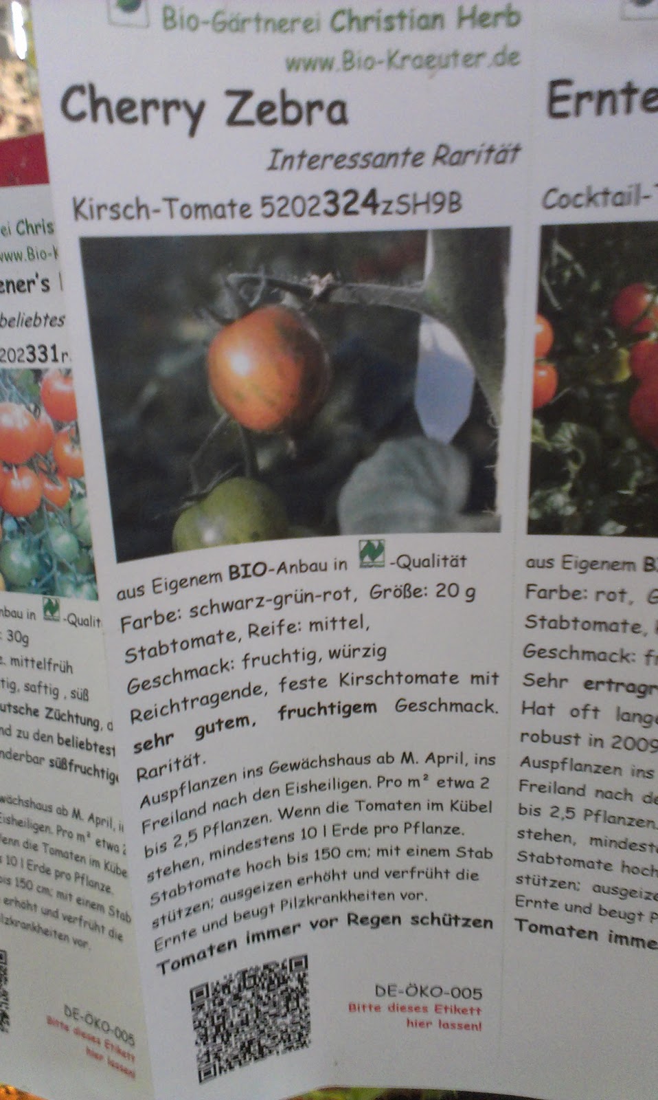 Vor einigen Wochen habe ich zwei Tomatensämlinge gekauft. Die russische Cocktailtomate mit dem unaussprechlichen Namen ist leider eingegangen. Cherry Zebra hat überlebt und wächst schön vor sich hin. Aktuelle Größe bestimmt schon 30 Zentimeter.